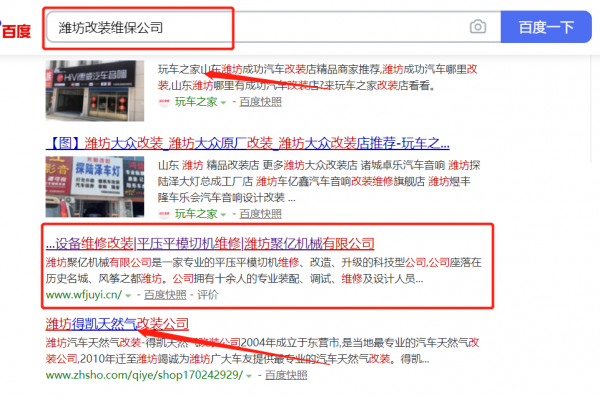我們公司與濰坊*億機(jī)械有限公司合作中,對這個公司所經(jīng)營的改裝維保這個行業(yè)提供了搜索引擎優(yōu)化推廣,與該公司的合作,更多的客戶讓我們公司為其提供搜索引擎優(yōu)化推廣,通過每一次合作,我們公司不斷完善自己,同時希望合作伙伴在經(jīng)營的路上越來越好。