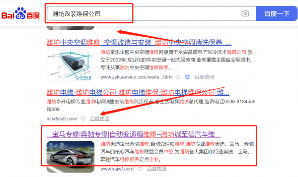 我們公司與濰坊誠(chéng)*信汽車維修有限公司合作中,對(duì)這個(gè)公司所經(jīng)營(yíng)的改裝維保這個(gè)行業(yè)提供了網(wǎng)站SEO優(yōu)化,與該公司的合作,更多的客戶讓我們公司為其提供百度快照排名,通過(guò)每一次合作,我們公司不斷完善自己,同時(shí)希望合作伙伴在經(jīng)營(yíng)的路上越來(lái)越好。