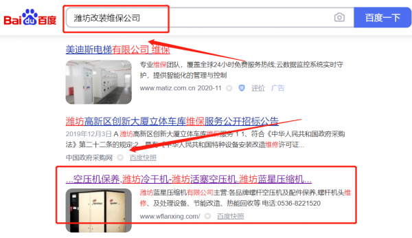 我們公司與濰坊藍*壓縮機有限公司合作中,對這個公司所經(jīng)營的改裝維保這個行業(yè)提供了網(wǎng)站SEO優(yōu)化,與該公司的合作,更多的客戶讓我們公司為其提供百度快照排名,通過每一次合作,我們公司不斷完善自己,同時希望合作伙伴在經(jīng)營的路上越來越好。