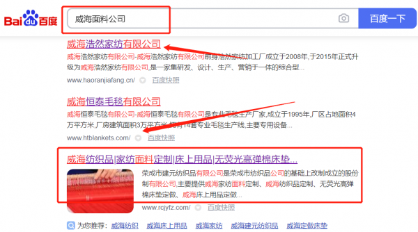 我們公司與榮成市*元紡織品有限公司合作中,對這個公司所經(jīng)營的面料這個行業(yè)提供了網(wǎng)絡(luò)推廣,與該公司的合作,更多的客戶讓我們公司為其提供關(guān)鍵詞搜索排名,通過每一次合作,我們公司不斷完善自己,同時希望合作伙伴在經(jīng)營的路上越來越好。