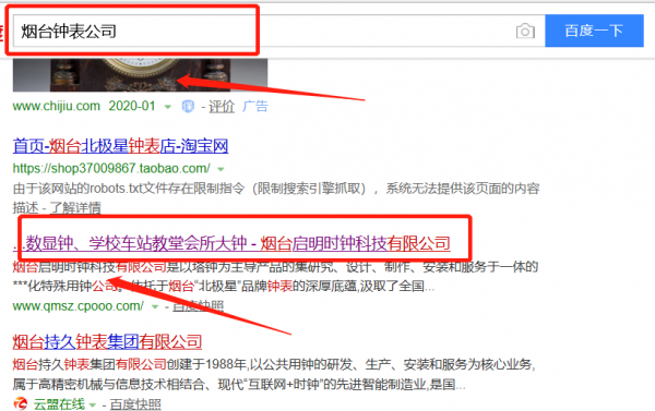 煙臺(tái)啟明時(shí)鐘科技有限公司與我司簽下百度霸屏協(xié)議