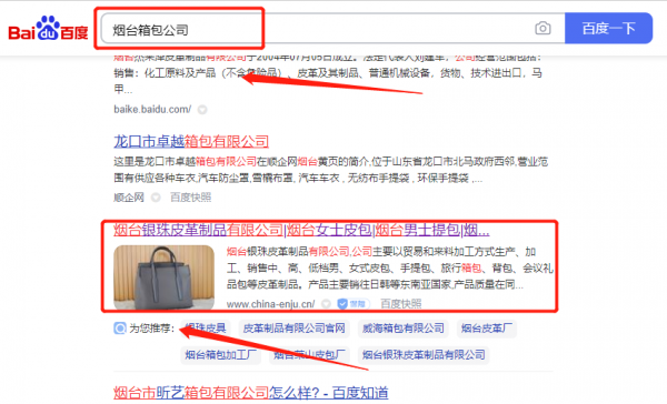 煙臺(tái)銀*皮革制品有限公司網(wǎng)絡(luò)推廣快上詞效果展示