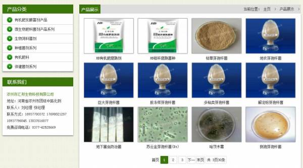 鄧州市匯邦生物科技有限公司與河南農(nóng)業(yè)大學(xué)、河南大學(xué)、河南省生物技術(shù)研究中心開(kāi)展技術(shù)合作,努力完善菌種研發(fā)體系,逐步推進(jìn)菌種和技術(shù)的“系列化”、“一體化”發(fā)展目標(biāo)。公司研發(fā)的產(chǎn)品主要有機(jī)肥腐熟菌劑、秸稈腐熟菌劑、飼料發(fā)酵菌劑、枯草芽孢桿菌、地衣芽孢桿菌、巨大芽孢桿菌、膠凍樣芽孢桿菌(硅酸鹽細(xì)菌)、側(cè)孢芽孢桿菌、多粘類芽孢桿菌、解淀粉芽孢桿菌、球孢白僵菌、哈茨木霉、根結(jié)線蟲(chóng)防治菌、抗重茬放線菌、蘇云金芽孢桿菌、乳酸菌等微生物超濃縮高含量菌粉,在全國(guó)范圍內(nèi)得到廣泛應(yīng)用實(shí)踐。我公司擁有有機(jī)肥、生物有機(jī)肥、生物有機(jī)復(fù)混肥等多方面專用技術(shù)。工業(yè)化高含量高活性芽孢桿菌菌粉的添加應(yīng)用,為有意進(jìn)入微生物肥料領(lǐng)域或飼料水產(chǎn)微生態(tài)添加劑的企業(yè)提供了一條快速有效的捷徑。