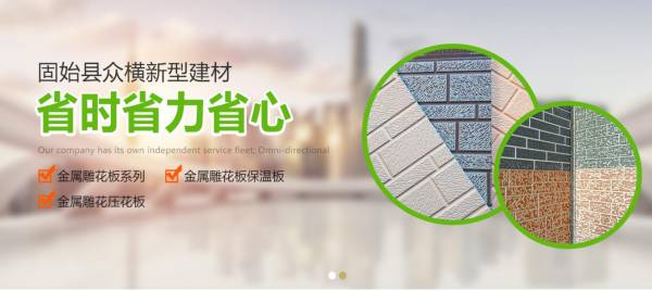固始縣*橫新型建材有限公司的誠信、實力和產品質量獲得眾多海內外建筑商的認可。固始縣眾橫新型建材有限公司自投放市場以來,緊跟國家《節(jié)能中長期專項規(guī)劃》等政策,實現(xiàn)了眾橫金屬雕花板匯聚了節(jié)能環(huán)保(聚氨酯夾芯層,PH7.0)、保溫隔熱(安裝金屬雕花板后的建筑室內外溫差15-20攝氏度)、防火阻燃(聚氨酯硬發(fā)泡技術防火可達B1級)、防水防潮(反射玻纖鋁箔紙功效)、隔音降噪(噪聲低于37DB)、安裝便捷(比傳統(tǒng)外墻保溫材料施工效率提升300%)等優(yōu)異性能,并迅速在保溫材料市場攻城略地。固始縣眾橫新型建材有限公司金屬雕花板被廣泛應用于居民樓、學校、醫(yī)院、辦公及商場大樓、輕鋼***、***廁所、崗亭、***板房等建筑物。