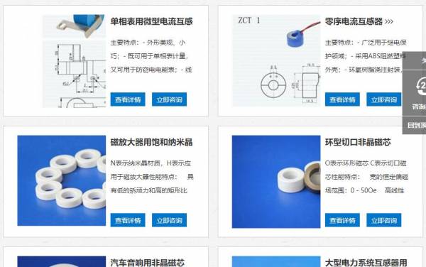 滑縣恒和電子有限公司選用我司企業(yè)電子元器件行業(yè)的網(wǎng)站優(yōu)化產(chǎn)品,其SEO關(guān)鍵詞有 單相表用微型電流互感器,零序電流互感器,零序電流互感器,磁放大器用飽和納米晶磁芯,磁放大器用飽和納米晶磁芯。其特點是用很合適的展示方式、展示效果、站點框架,把客戶及其用戶很關(guān)心的問題突出表現(xiàn);并以簡潔明朗的設(shè)計風(fēng)格,清晰展現(xiàn)公司水平實力,確保一秒抓住目標(biāo)用戶眼球,給用戶留下良好的第一印象。滑縣恒和電子有限公司成立于2014年,是經(jīng)滑縣市市場監(jiān)督管理局審核的有資質(zhì)的公司,其統(tǒng)一社會信用代碼:91410526093222277J 。公司地址:河南省安陽市滑縣南站東1000米。