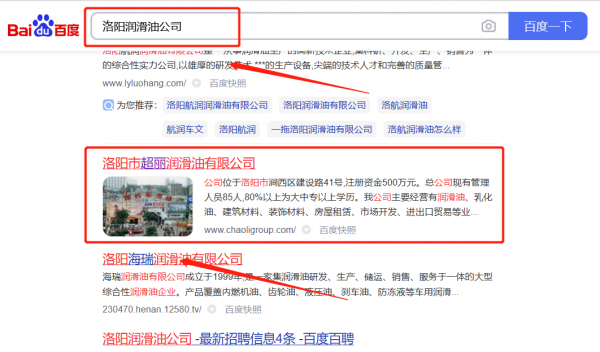 我們公司與洛陽市超*潤滑油有限公司合作中,對這個公司所經(jīng)營的潤滑油這個行業(yè)提供了網(wǎng)絡營銷,與該公司的合作,更多的客戶讓我們公司為其提供關鍵詞搜索排名,通過每一次合作,我們公司不斷完善自己,同時希望合作伙伴在經(jīng)營的路上越來越好。