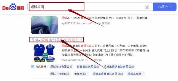 項(xiàng)城市恒*服裝有限公司網(wǎng)站優(yōu)化最快上詞效果展示