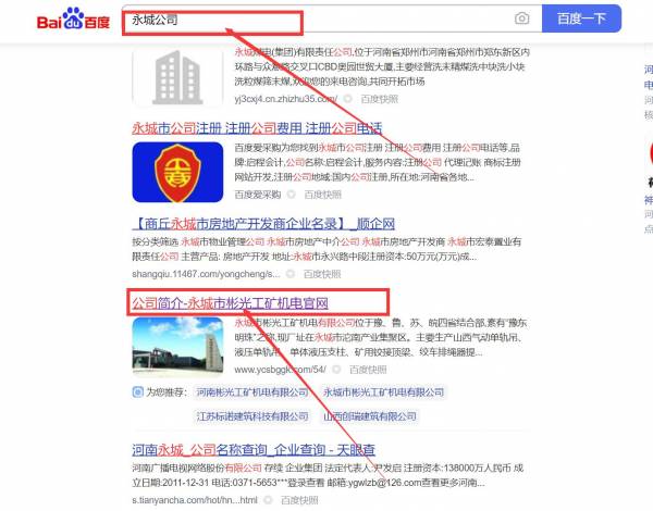 永城市*光工礦機(jī)電有限公司網(wǎng)站優(yōu)化最快上詞效果展示