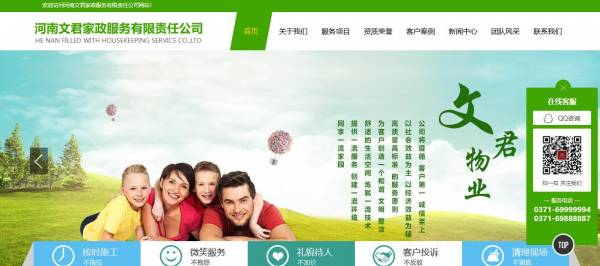 河南文君家政服務(wù)有限責(zé)任公司成立于1996年,總部位于鄭州市經(jīng)三路交廣電路,文君公司集家政、搬運、保潔、物業(yè)等綜合性服務(wù)企業(yè);文君公司在全省各地區(qū)均設(shè)立有分公司。