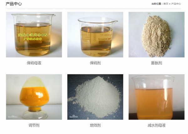 公司主要生產(chǎn)減水劑母液,保坍劑母液、增效劑母液和成品,以及調(diào)節(jié)劑和增效劑,混凝土及外加劑輔料等產(chǎn)品,公司有強大專業(yè)的技術團隊,有多年的實踐經(jīng)驗,擅長解決各種生產(chǎn) 及復配的適用性問題。