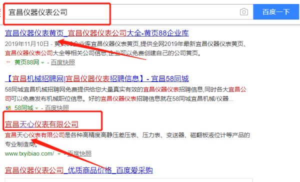我們公司與宜昌天心儀表有限公司合作中,對(duì)這個(gè)公司所經(jīng)營(yíng)的儀器儀表這個(gè)行業(yè)提供了百度快照排名,與該公司的合作,更多的客戶讓我們公司為其提供百度快照排名,通過(guò)每一次合作,我們公司不斷完善自己,同時(shí)希望合作伙伴在經(jīng)營(yíng)的路上越來(lái)越好。