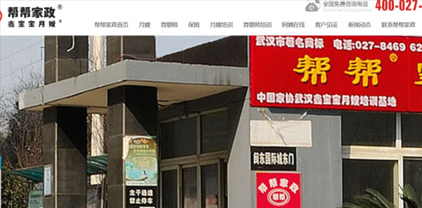 武漢市幫幫家政服務有限公司1999年成立。專業(yè)從事月嫂、育嬰師、保姆就業(yè)一條龍服務。漢陽總部:漢陽區(qū)鐘家村閩東國際城5棟1101室,漢口分部:香港路90號農(nóng)行大廈6-506室,武昌分部:中南路中建廣場C座27J.公司自購及租賃 8 套商住樓房,共計 1200 平米,其中“中國家協(xié)武漢鑫寶寶月嫂培訓基地”占 600 平米。團隊行管人員50人,家政服務員10000人。注冊資金 100 萬,工商注冊號:420104000005998,總投資 1000 萬。2012年度武漢市人民政府認定“幫幫”為武漢市著名商標。品牌價值人民幣 1 個億。