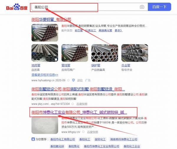 衡陽市*泰化工實業(yè)有限公司百度排名最快上詞效果展示