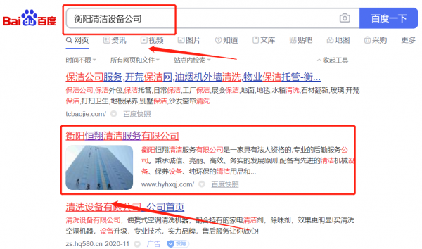 衡陽*翔清潔服務(wù)有限公司優(yōu)化排名排名效果展示